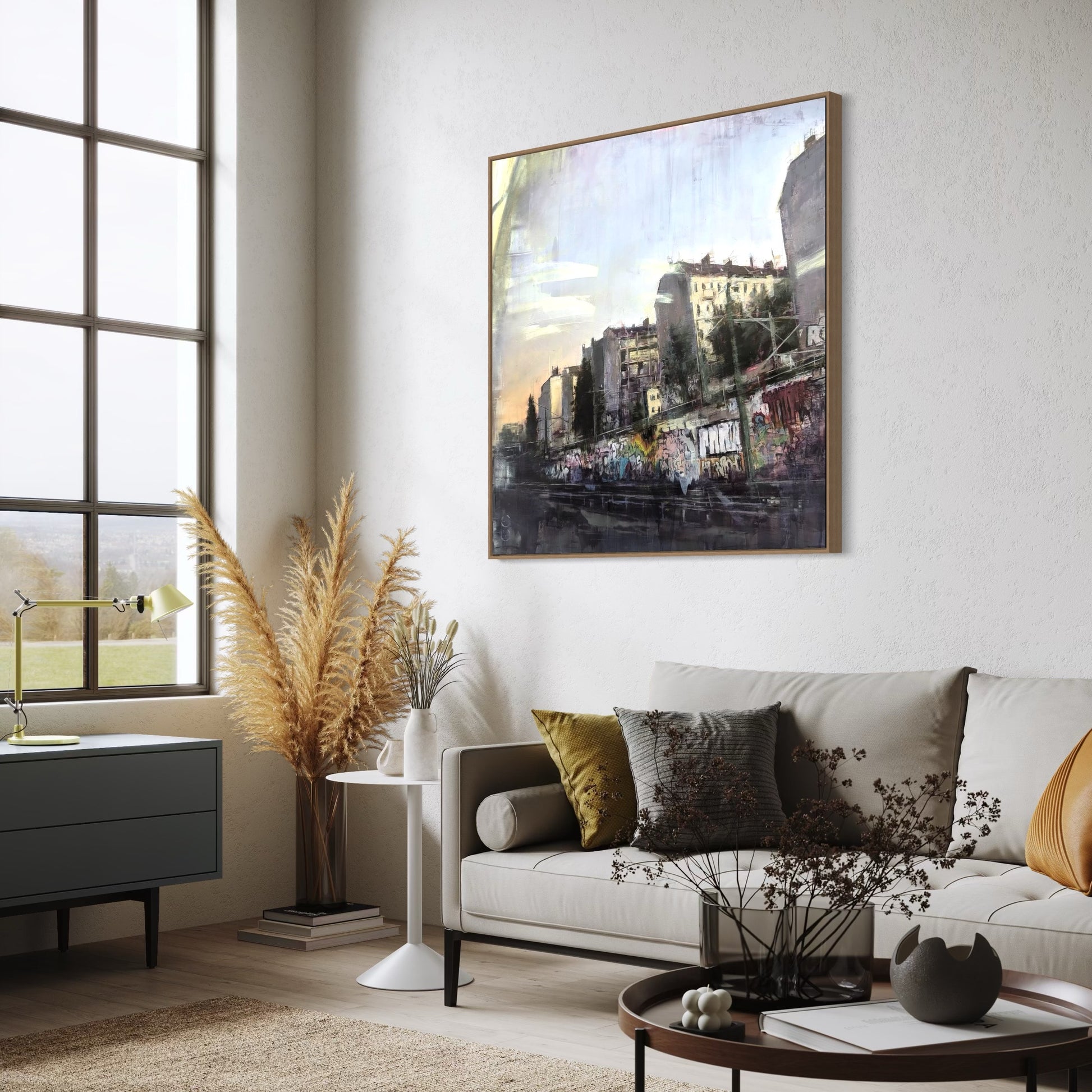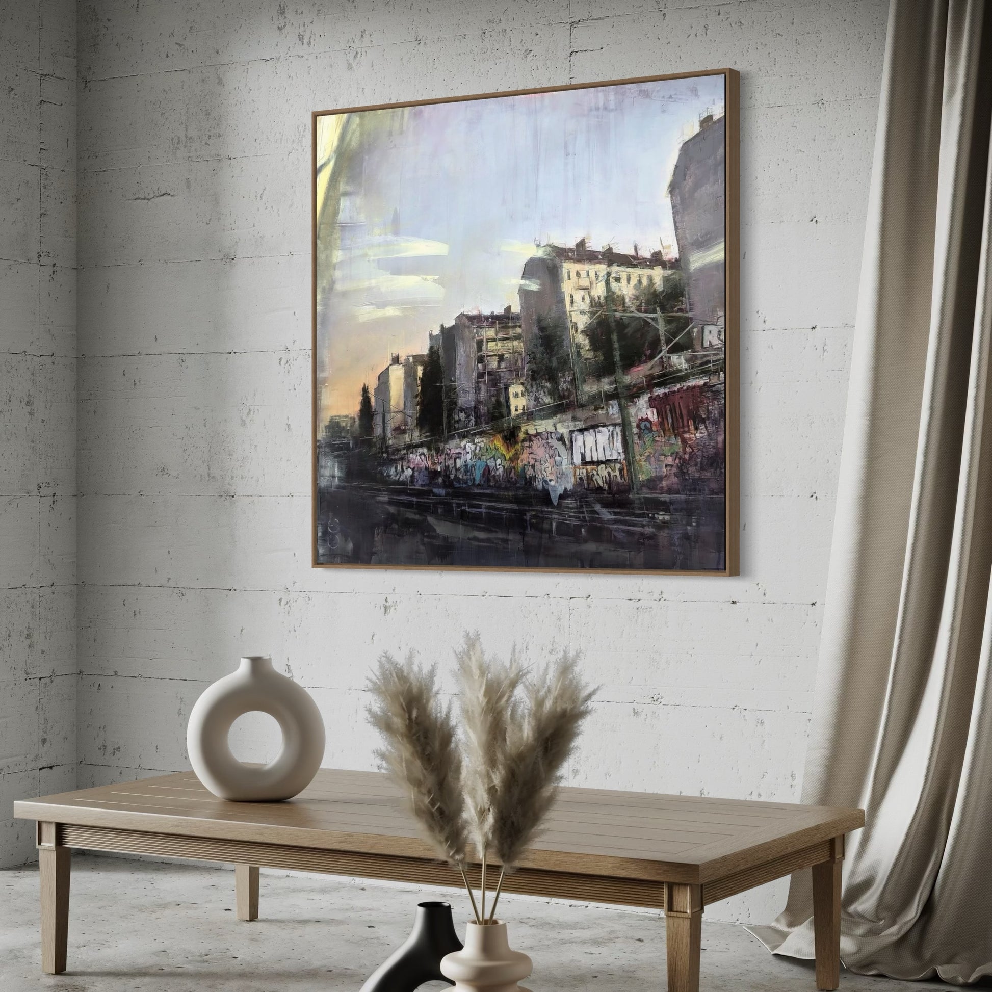 Kontaktieren Sie mich. Ich kann ein Mock-up erstellen. Schicken Sie mir dazu einfach ein Foto von der Wand bzw. dem Raum, wo das potentielle Bild hin soll.