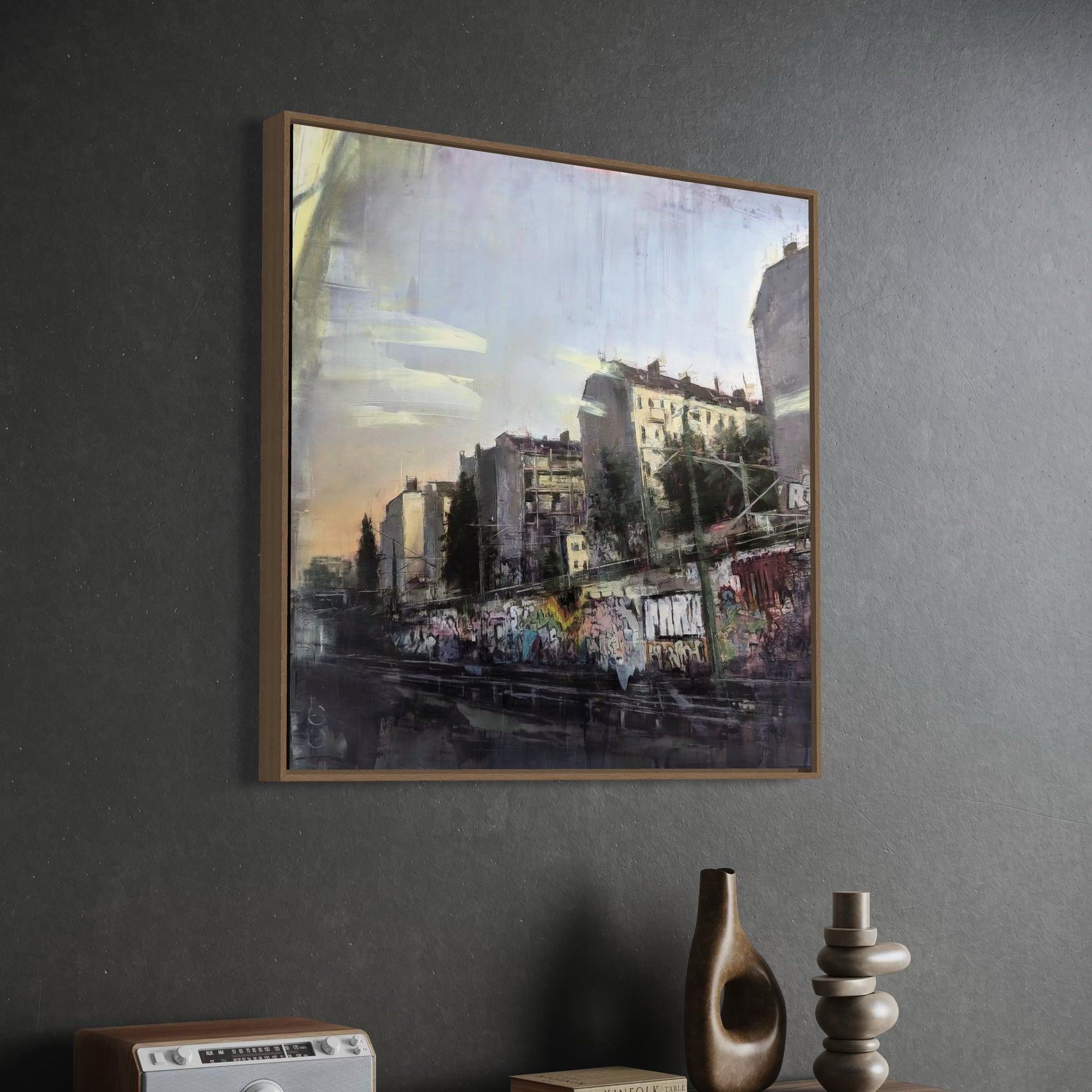 Schattenfugen-Rahmen aus Pappel-Hartholz. Inkl. vorinstallierten Sägezahnbeschlägen und Gummipuffern, die Ihre Wand schützen und Ihr Kunstwerk perfekt ausrichten.