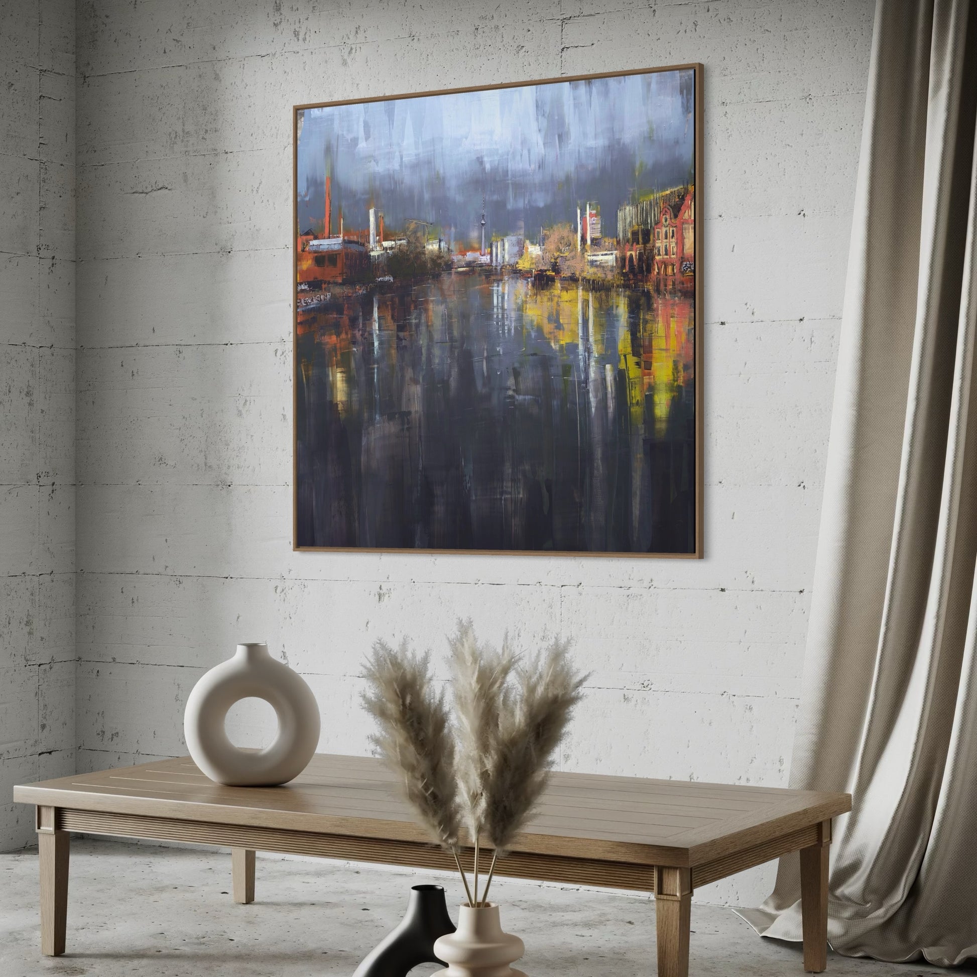 Kontaktieren Sie mich. Ich kann ein Mock-up erstellen. Schicken Sie mir dazu einfach ein Foto von der Wand bzw. dem Raum, wo das potentielle Bild hin soll.